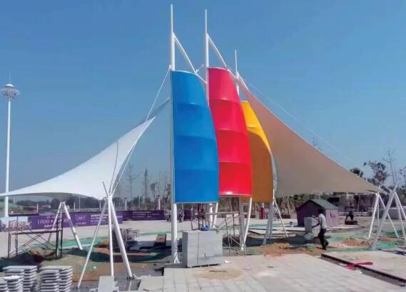 本公司開發的膜結構建筑風格獨特,藝術性強,具有濃厚的現代氣息, 力學特性好,光學熱學性能優,阻燃又自潔,工藝性能佳,成本低,工期短等優點。